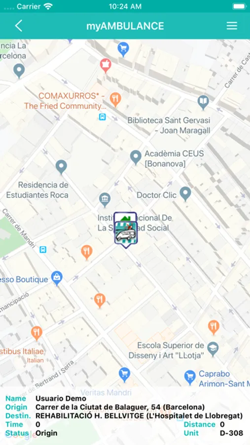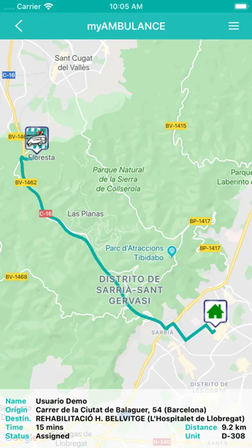 myAMBULANCE is the app that allows the ambulancias DOMINGO clients/patients to locate in real time the vehicle assigned to their service. This ambulance locator includes a map where you can verify the origin and the destination of the vehicles, the route to be taken, as well as know the estimated pick-up or arrival time.