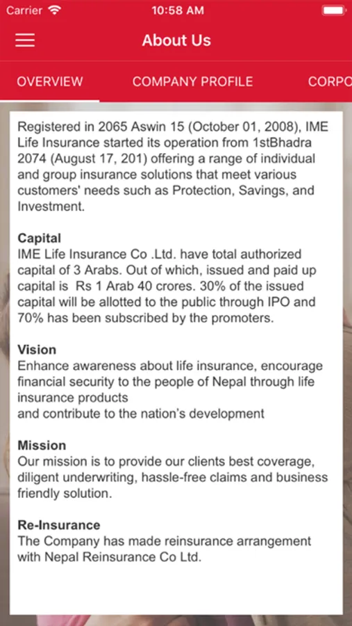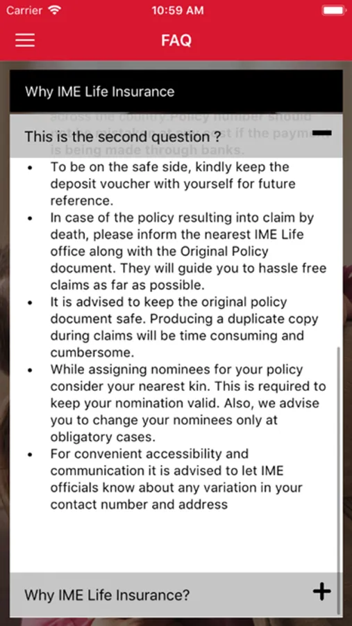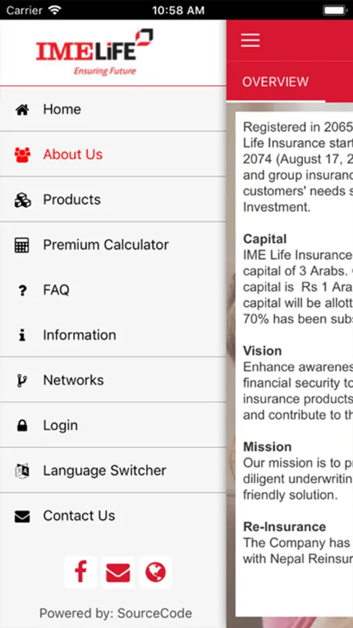 IME LIFE application provides detailed information about its products as well as other events and news. Application also has language switcher feature so that user can select the language they are comfortable with. Application can be used both in English and Nepali. Application also provides information related to branches of the company. Application can also be used offline i.e without the internet connection.Data and any updates gets updated while device is connected to the internet. Some of the main sections of this application includes: