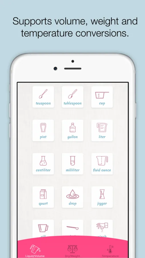 Easily convert and scale recipes in an instant. Doubling a recipe (or cutting a recipe in half) is simpler than ever before, with all the most common units of cooking measurement right at your fingertips.