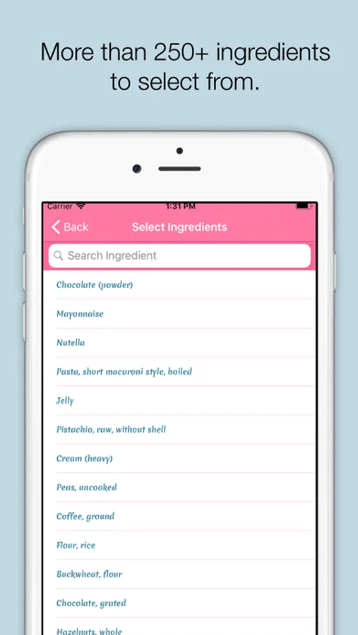 It comes with a database of common ingredients based on weight figures from the USDA (US Department of Agriculture).