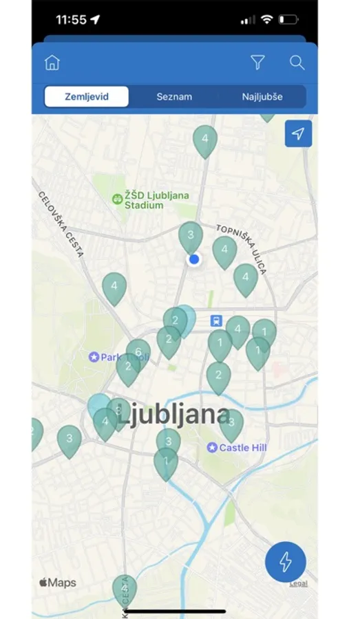 Poiščite najbližjo električno polnilnico na zemljevidu.
