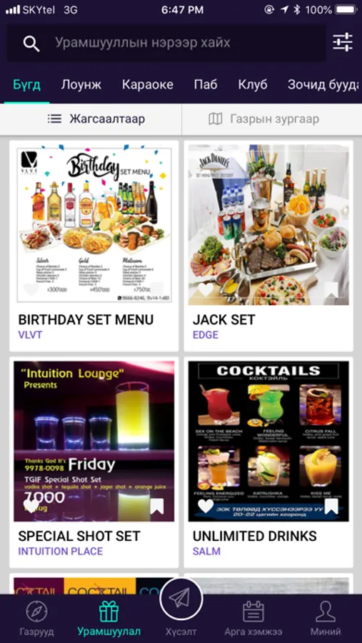 Night+ апликэйшн бол Улаанбаатар хотын шөнийн цэнгээний газруудын мэдээллийг нэг дороос авах цахим хөтөч юм. Хөтчөөр зогсохгүй өшөө олон гоё гоё боломжууд байгааг татаж аваад ашиглахаараа мэдэмз. Янзтай хөтөчтэй назгай цэнгэ...