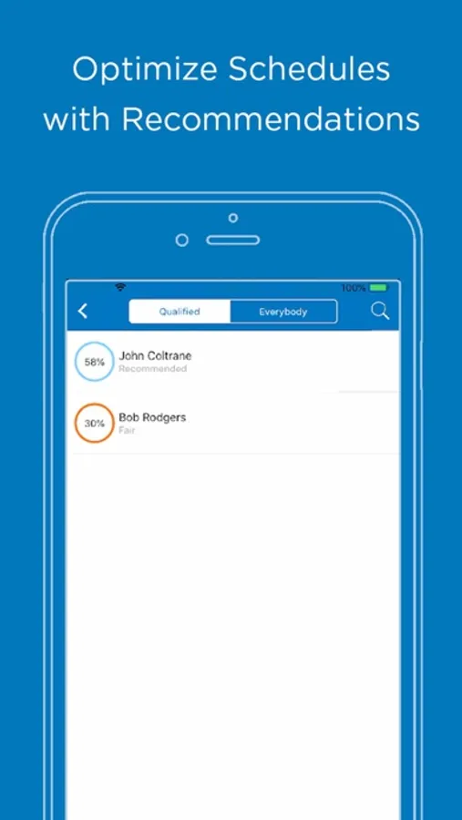 While scheduling, see recommendations based on default standard criteria and/or your own custom criteria (e.g. skill, performance, etc.) to make sure you make the best scheduling decisions.