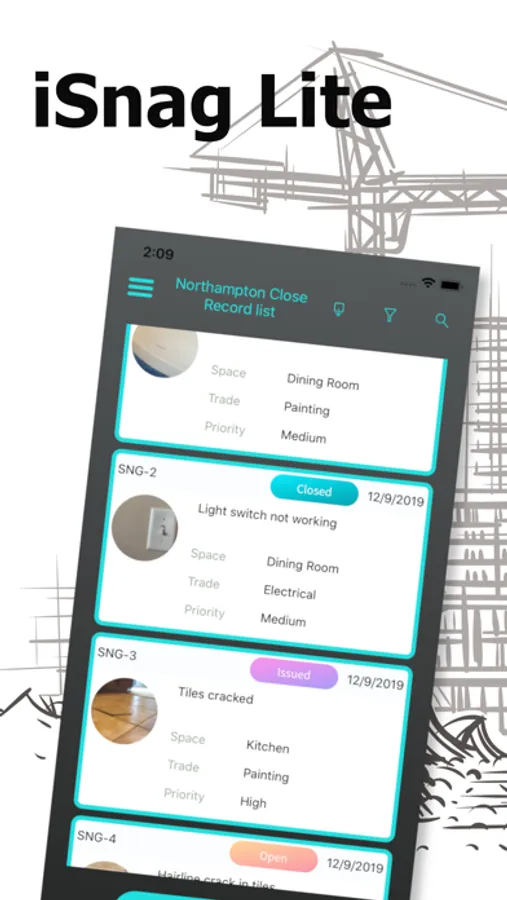In fact, not just snagging; iSnag Lite will streamline your auditing, tasking or inspection process too. Raise items on the go, add information, take photos and videos, then share them with your team with ease – all with iSnag Lite.