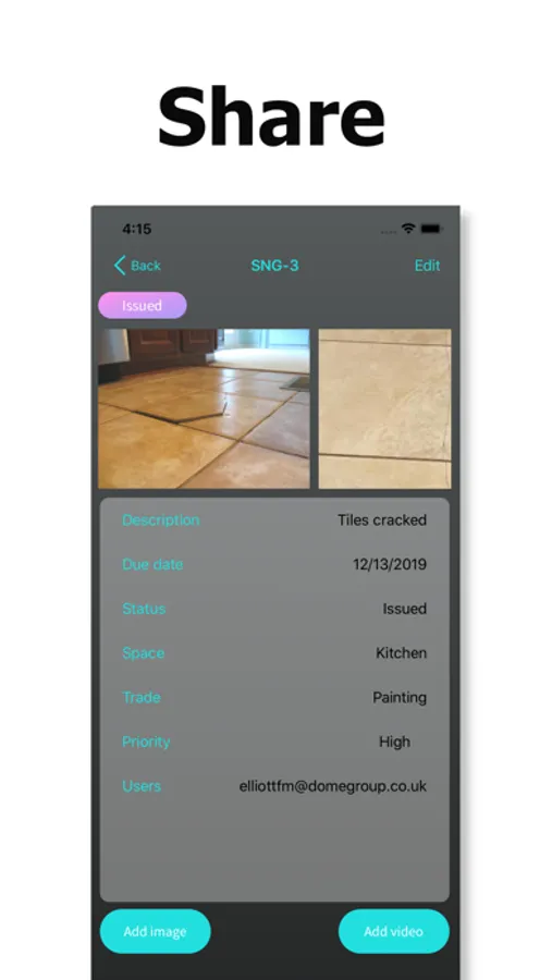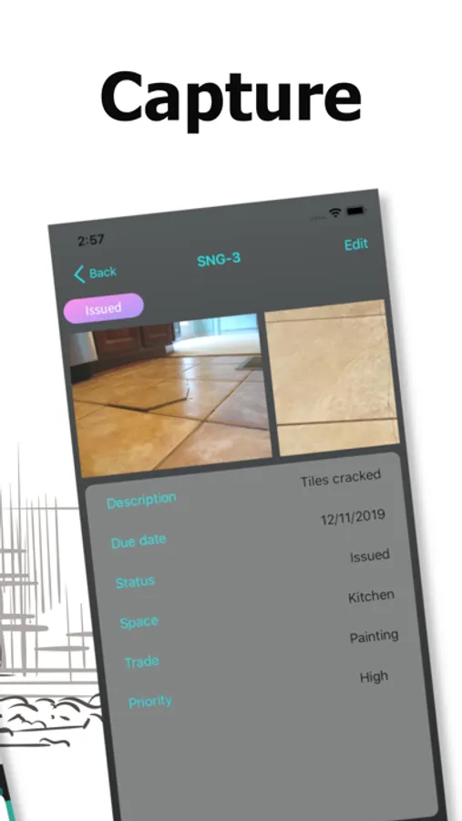 • Record issues with annotated photos, videos, descriptions, due dates and more
