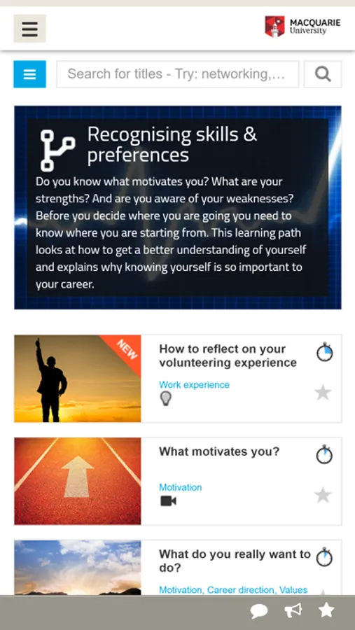 - CAREER E-LEARNING: Short courses tackling everything career-related from self-awareness to succeeding in the role