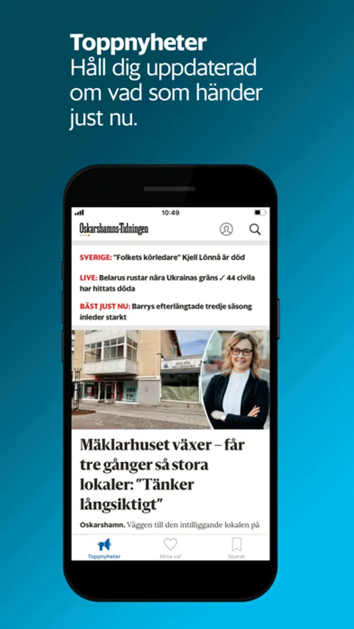 Toppnyheter är det nyhetsflödet i appen som är mest likt det du är van vid från nyhetssajten. Det innehåll du ser här är det senaste som har hänt och det som redaktionen anser vara viktigast just nu.