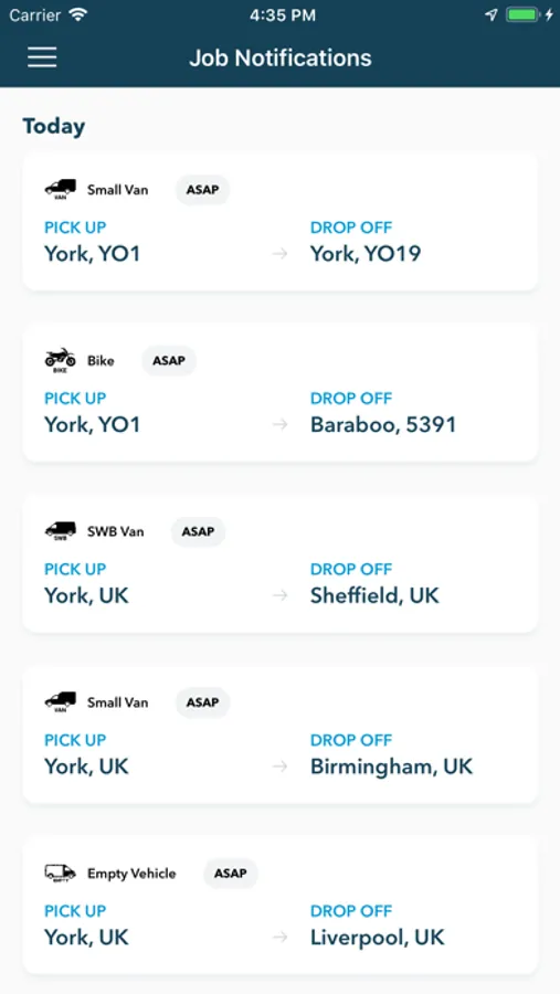 This has been developed by transport professionals for the transport industry using the latest technology; our aim is to be the no. 1 choice for couriers and hauliers due to the simplicity and accessibility of the mobile ready website and app. Offering the best platform at the best value for money and a personal customer service 24/7 to mirror the transport industry.