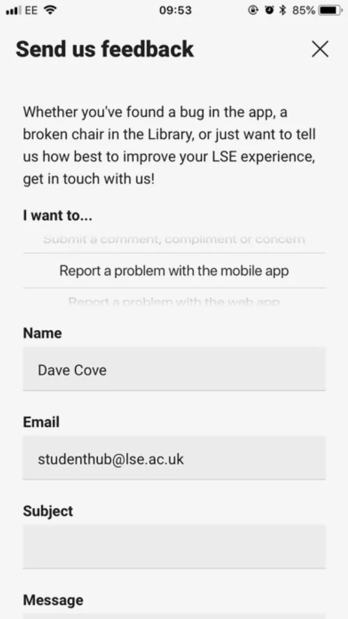 Any questions about the app? Email us at studenthub@lse.ac.uk