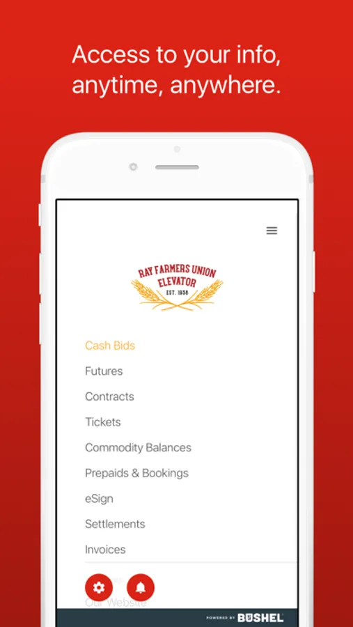 The Ray Farmers Union Elevator app is free, secure, and developed by the industry-leading Bushel platform.