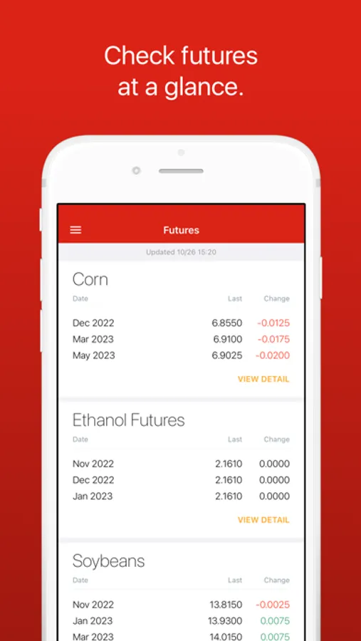 Futures: See Grains, Feed, Livestock, and Ethanol futures listed in order of your preference