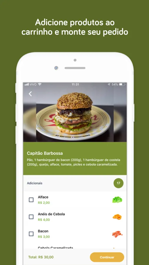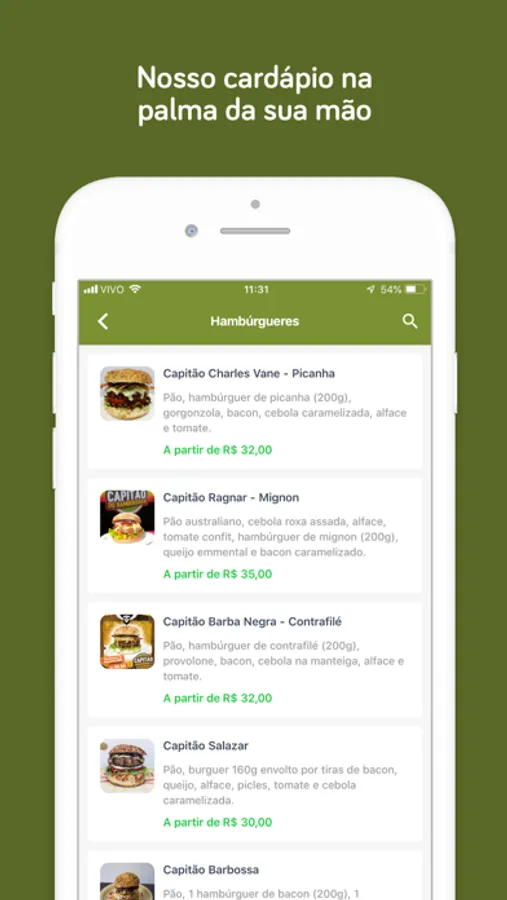 Com o aplicativo Capitão do Hambúrguer você pode:
