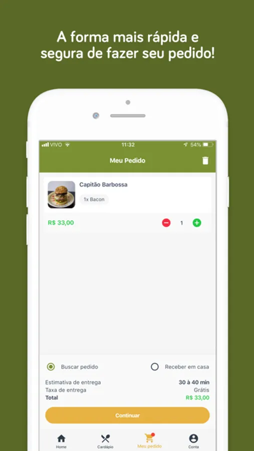 -Receber o pedido diretamente na sua casa ou deixar o pedido feito para retirada no balcão do estabelecimento;