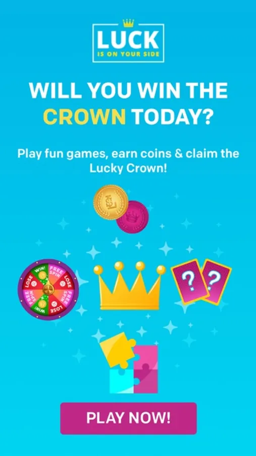 Win as many LUCKY COINS as you can in the course of the day, and you will be rewarded... with a LUCKY CROWN! Visit the Leaderboard page to check your score every day, and see where you rank, compared to the other lucky users. The user with the most points is awarded the LUCKY CROWN at the end of the day.