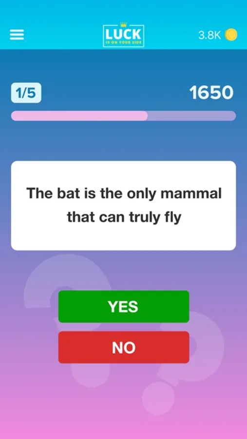 Answer 5 YES/NO trivia questions correctly and as fast as you can. The faster you answer, the more Trivia points you get. The goal is to score more than 5000 Trivia points in order to win, and therefore get the LUCKY COINS you deserve. Incorrect answers give no Trivia points, obviously. :)