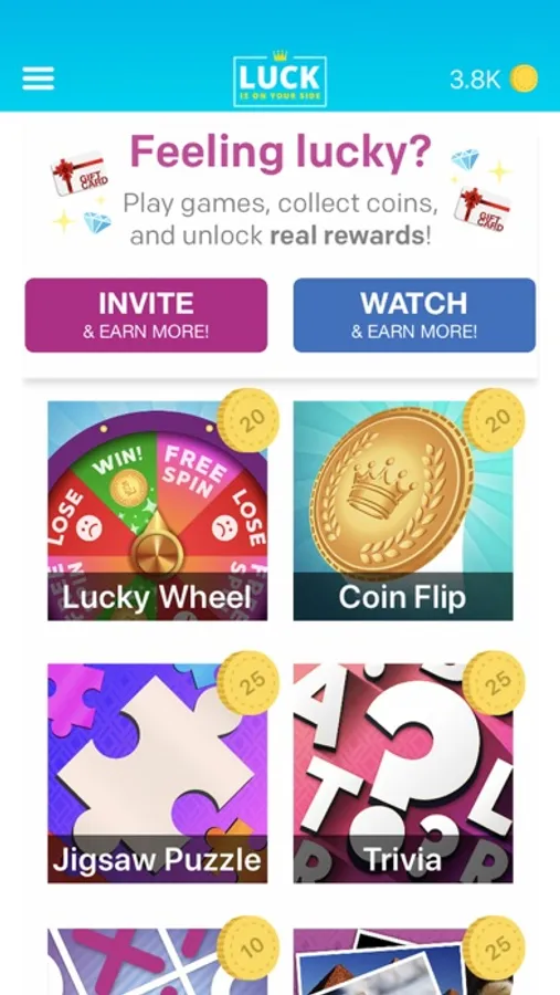 Luck Is On Your Side is completely free to download and play - no in-app purchases are required. Winning LUCKY COINS allows you to enter to win the GiftCard of your choice!