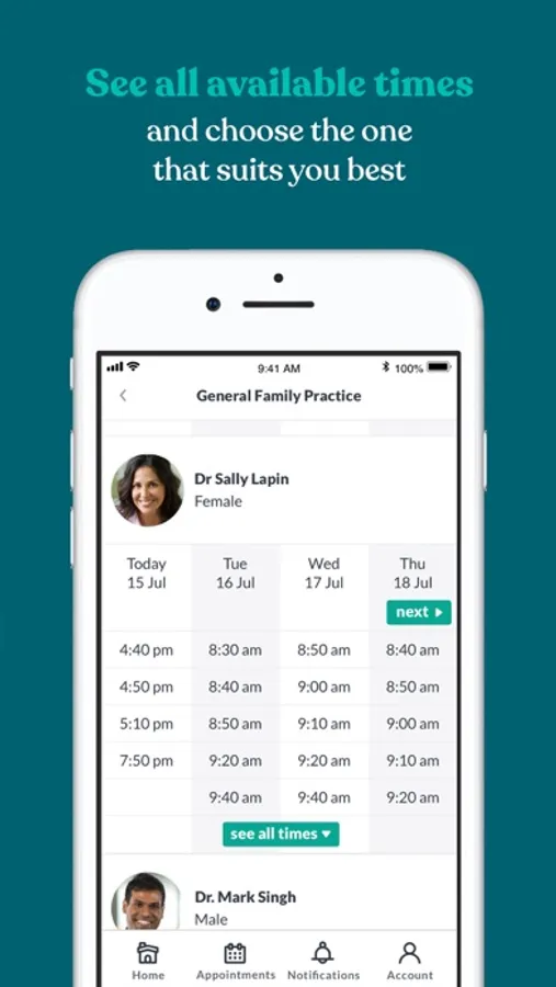 - Customised doctor and appointment type set-up to ensure you book with the right doctor based on your condition