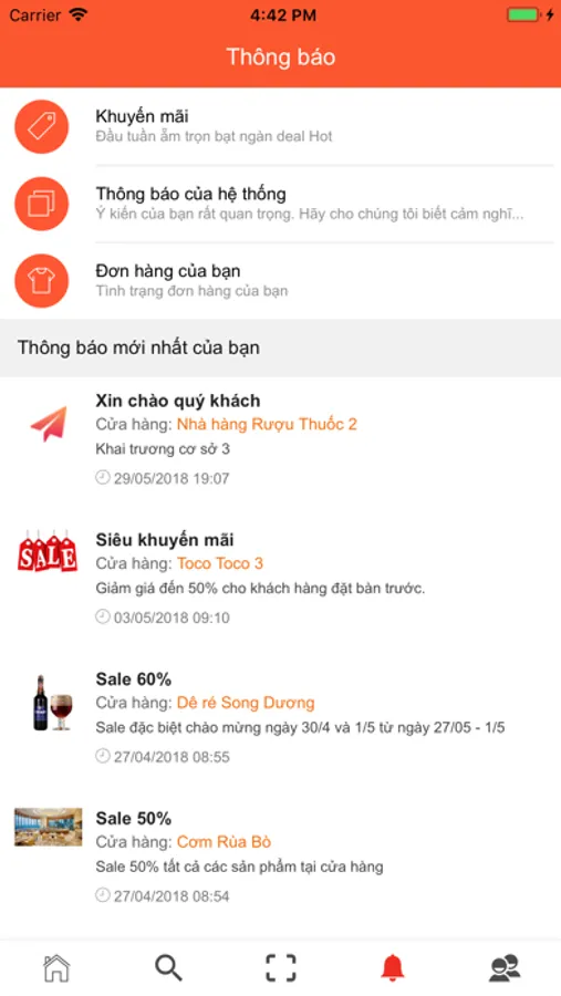 • Gửi thông báo, khuyễn mãi tức thời đến khách hàng