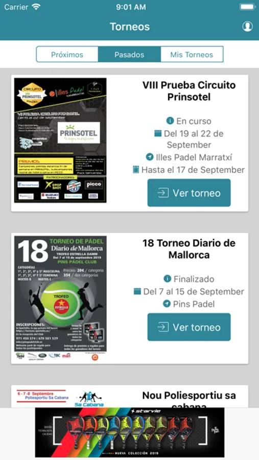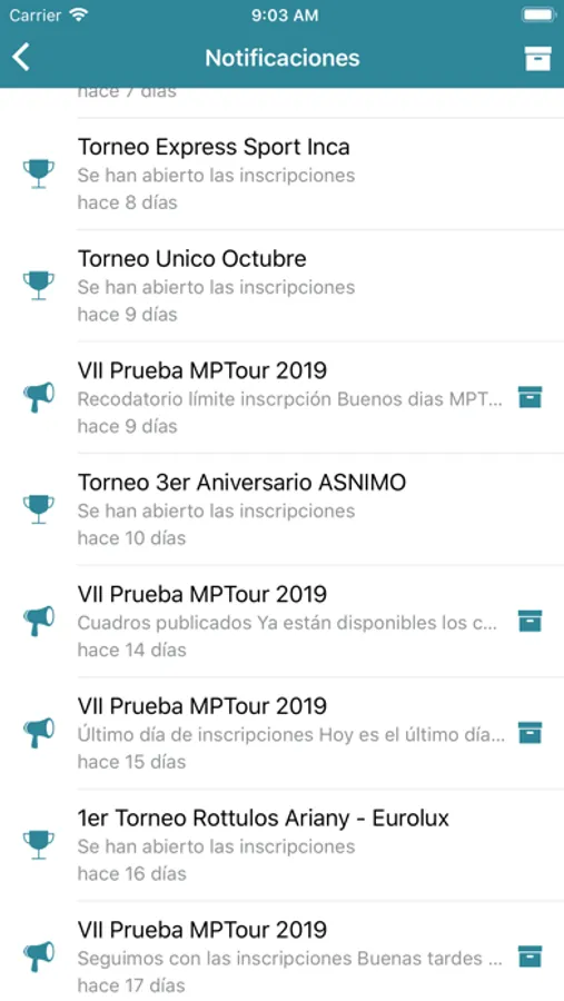 Consulta los próximos torneos, inscríbete y recibe notificaciones al instante de la evolución del torneo