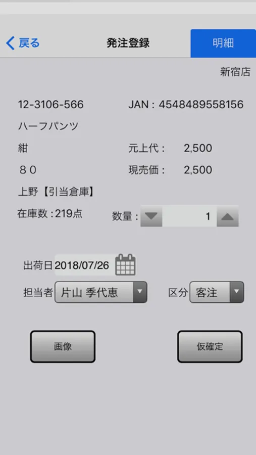 発注画面の確定ボタンで入力した発注データを弊社サービスへ送信します。