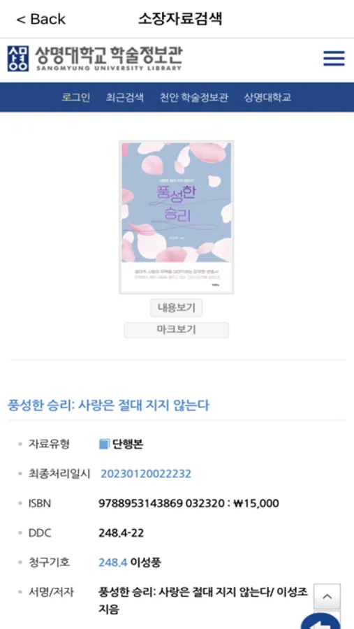 상명대학교 학술정보관 Screenshots