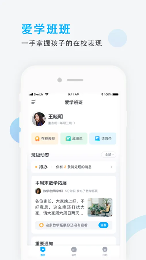 - 及时聊天:与老师在线沟通,参与班级事务讨论;