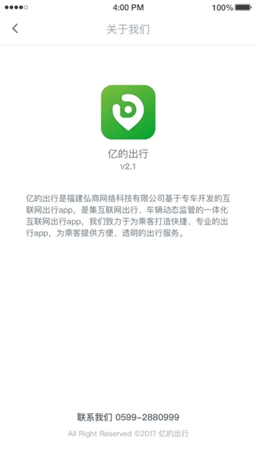 “亿的出行”由亿的出行科技(福建)有限公司自主研发的出行APP,努力打造经济、个性定制客运线上化出行服务。主要功能有城内约车、城乡拼车和跨城拼车等功能。"亿的出行”不忘初心只为出租车服务,致力于打造出租车专用电召服务系统,公司采用O2O经营模式,线上用软件与线下电话相结合为各种不同需求的乘客提供满意的约车服务体验!助力出租车成功转型升级!为提高出租车收益,发展出租车城乡拼车、跨城拼车和高铁站拼车上门接送业务,拓展跨城快递业务!努力打造一个适合出租车经营和生存的生态环境!