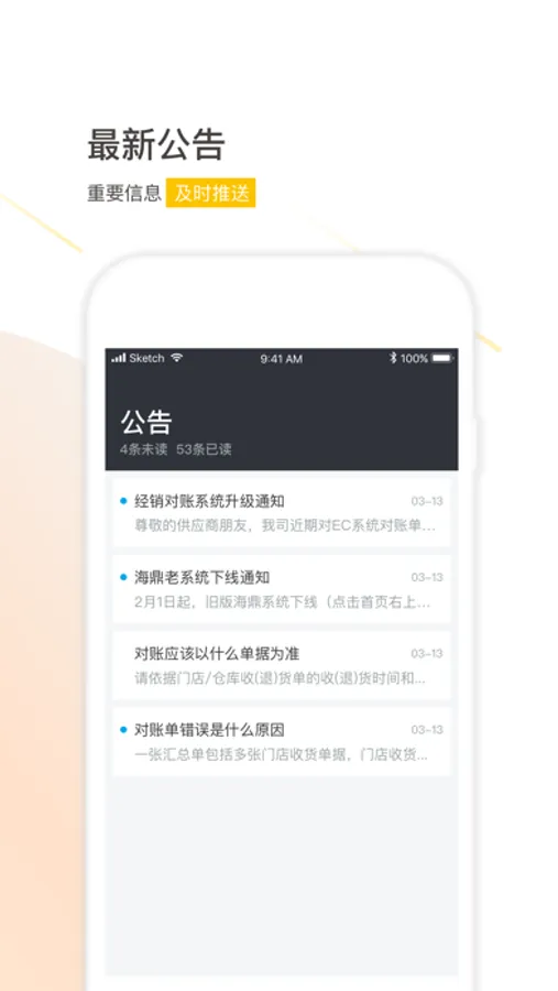 鲜蜂面向便利蜂供应商,是EC供应商平台的移动化版本;帮助供应商随时随地查看单据,获取最新消息