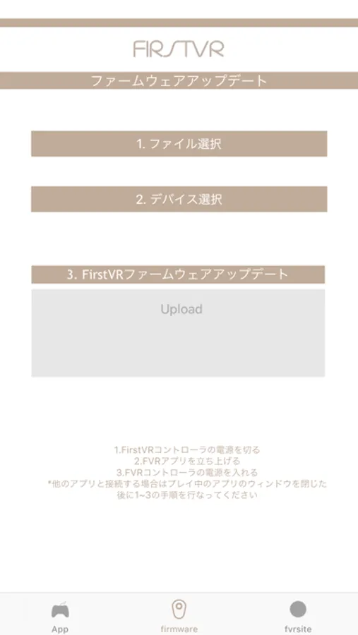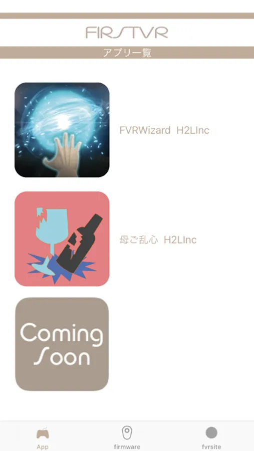 本アプリケーションは、FirstVR対応アプリの一覧表示やファームウェアアップデートなどを行えるアプリです。