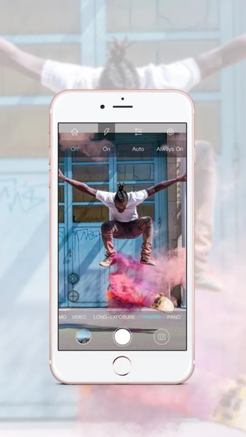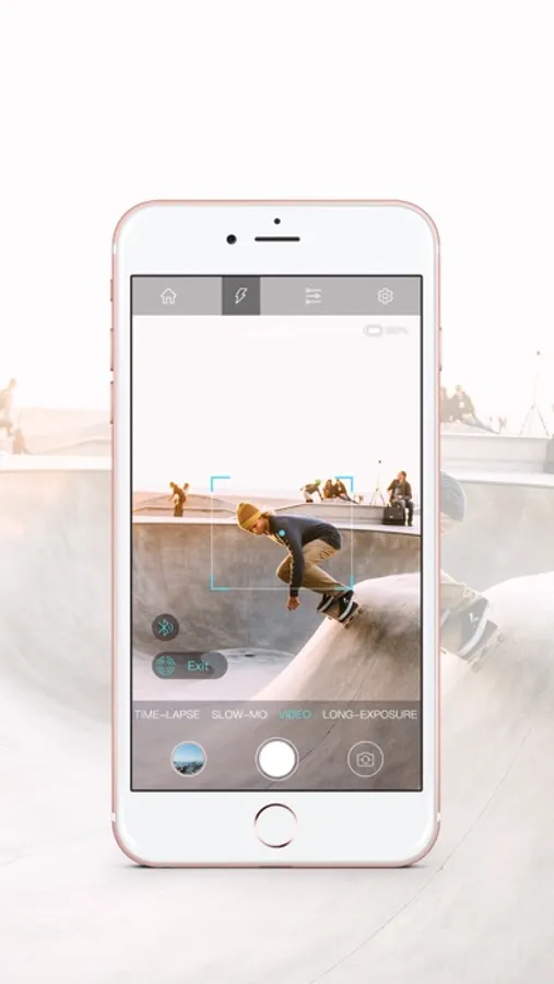 Once connected to Bluetooth you can control your smartphone’s camera from one place, with one hand. Use the gimbal shutter button to stop/start recording and the Mode Button to change operation modes.