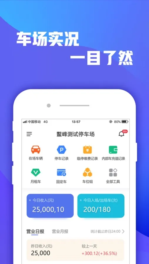 掌上停车场是车位管家旗下的停车场管理软件,运用移动互联网技术、AI人工智能、IOT物联网、云端大数据技术,为您的停车场提供的精细的运营报告和实用的管理工具,做到停车场情况随时掌握,大幅提高车场管理的质量和效率。