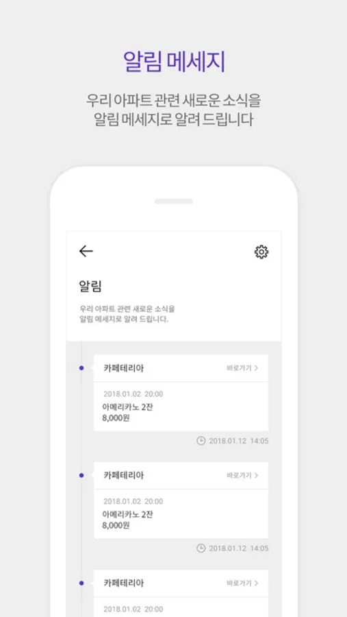아파트 주요 일정, 공지사항을 푸시기능을 통해 빠르게 알려 드립니다.