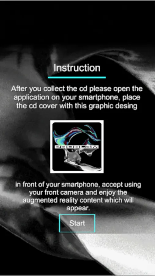 Od tego momentu: można ruszać kamerą albo wziąć płytę w rękę i ją obracać powoli aby zobaczyć efekt animacji AR którą przygotowaliśmy. Muzyka i animacja trwają dopóki kamera jest w stanie śledzić pozycje okładki. Jeżeli kamera straci tracking okładki należy spróbować ponownie trzymając telefon i okładkę stabilniej i zwalniając ruchy telefonem/okładką.