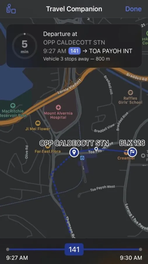 From the app, you can select your stop from a map view, a list of all stops, or simply from your bookmarks. It provides you up to the minute information on your bus’s arrival time. You can also request and view alternate stops located nearby. You can add individual bus stops to your list of favourites.