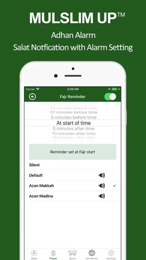 The other key feature of the Muslim Up™ Qibla, Salah Ramadan app is that it brings you Salah timings and prayer alarm. The app will show Salat timings for your region if you have the GPS location turned on. If not then like the Qibla direction feature, you can easily select your location from Salah timings offline database. After knowing the prayer timings especially in Ramadan for your destination, you can set a prayer alarm. The best thing about the Salah alarm in this app is that the alarm comes with complete Adhaans of Makkah and Madina. So, next time you set an alarm for prayer, you will be reminded by the most melodious adhaans.