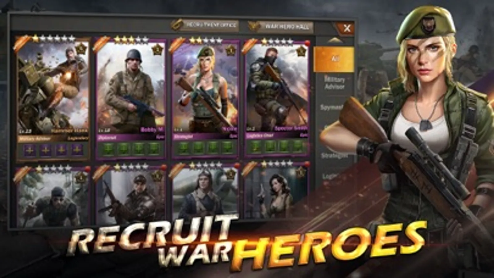 War Heroes! Gods of military will help you out to develop and battle. Challenge the roguelike expedition and get your war heroes trained up!