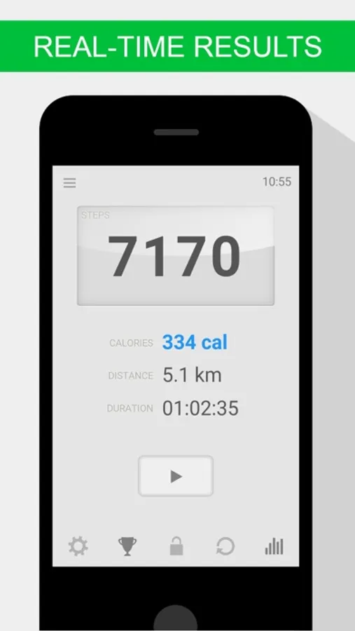 This easy to use Step Counter app records and displays not only the number of steps walked but also the number of calories burned, time spent walking and distance covered.