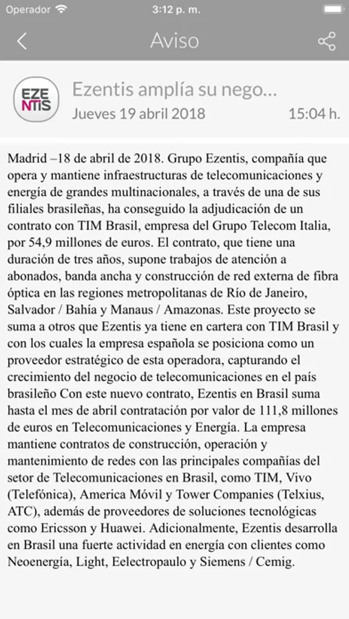 Bienvenido a nuestra APP Ezentis Comunica, un innovador y completo canal para que todos podamos estar informados de las noticias mas importantes de Ezentis, estar conectados y ser partícipes de las últimas novedades sobre la empresa.