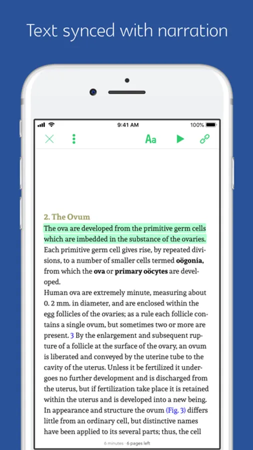The app will highlight the sentence being narrated so that you can follow along as the words are read aloud.