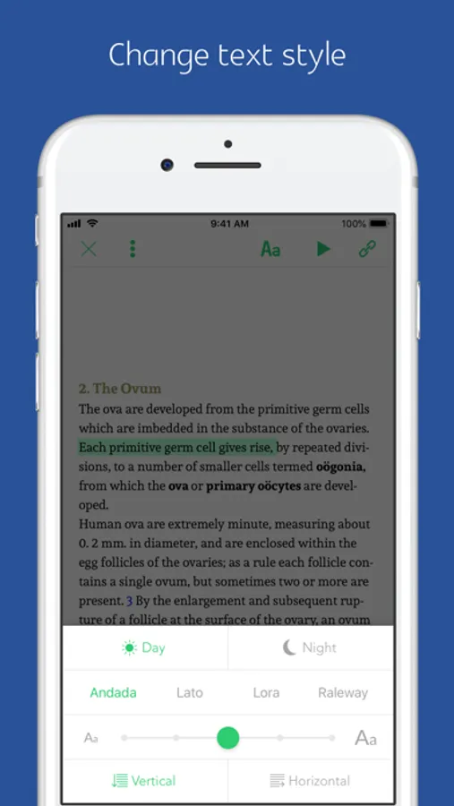 Thanks to sync narration feature, you can change from reading to listening or vice versa easily.