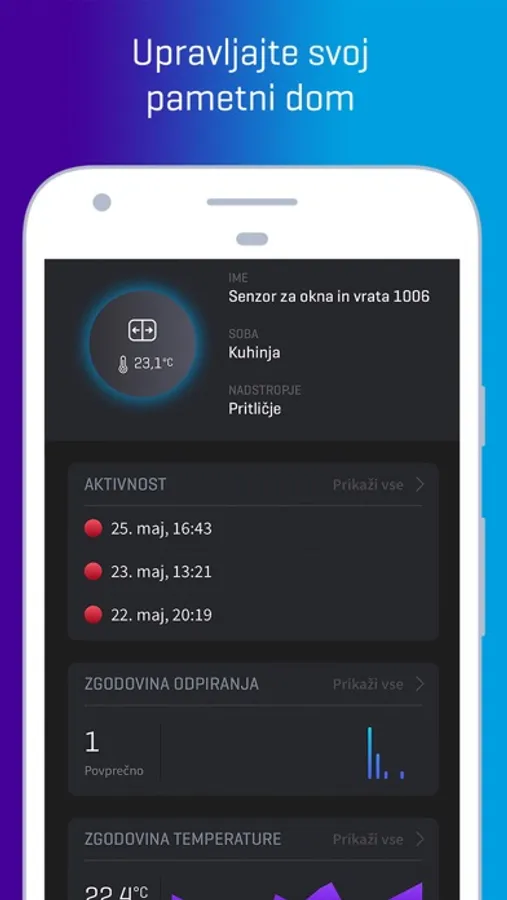 - nadzor in upravljanje pametnih naprav, kot so kamere, senzorji, pametne vtičnice, luči ...,