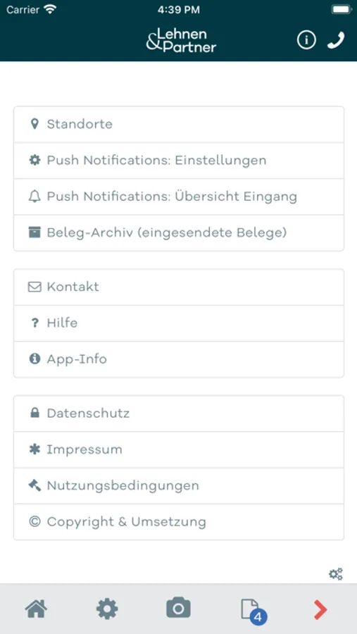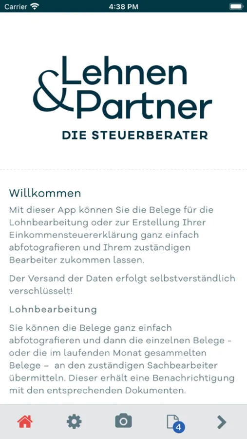 Mithilfe dieser App können Belege, Dokumente und andere Schriftstücke schnell, sicher und komfortabel an die Kanzlei Lehnen und Partner gesendet werden.