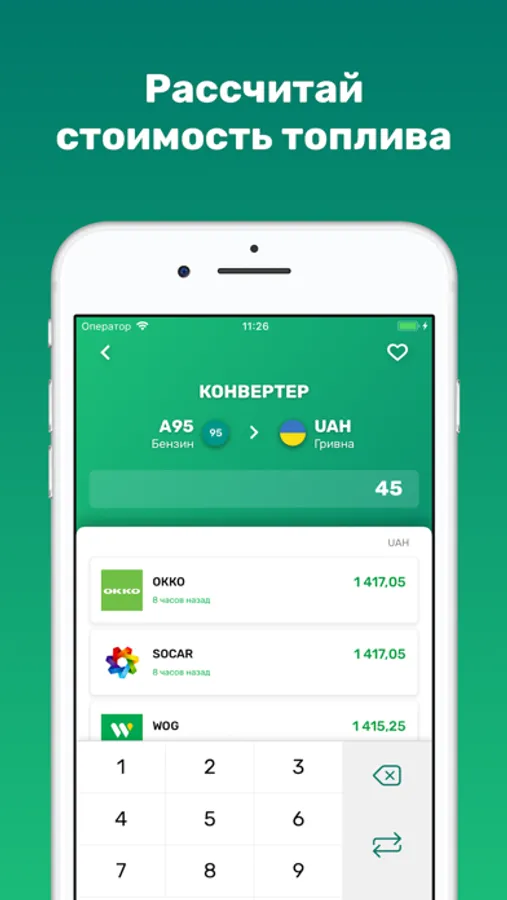 Конвертер валют, криптовалют и стоимости заправки Вашего транспортного средства.