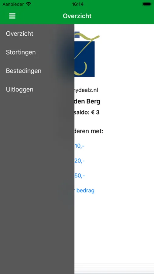 Tevens kunt u via de app uw saldo opwaarderen met iDEAL.