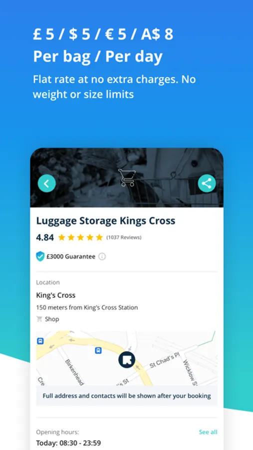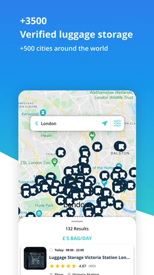 With Radical Storage, you can now make the most of your holidays or business trips without worrying about your luggage. Simply choose the luggage storage location that meets your needs, book it in less than no time and feel free again! We designed this convenient application with your needs in mind!