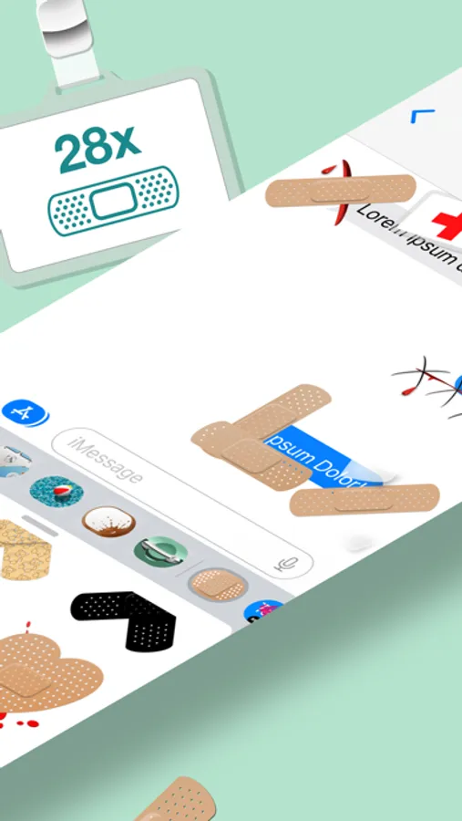 Contains 28 stickers for rapid wound healing or motivational pep talk, including plasters and pills in different shapes and colors.