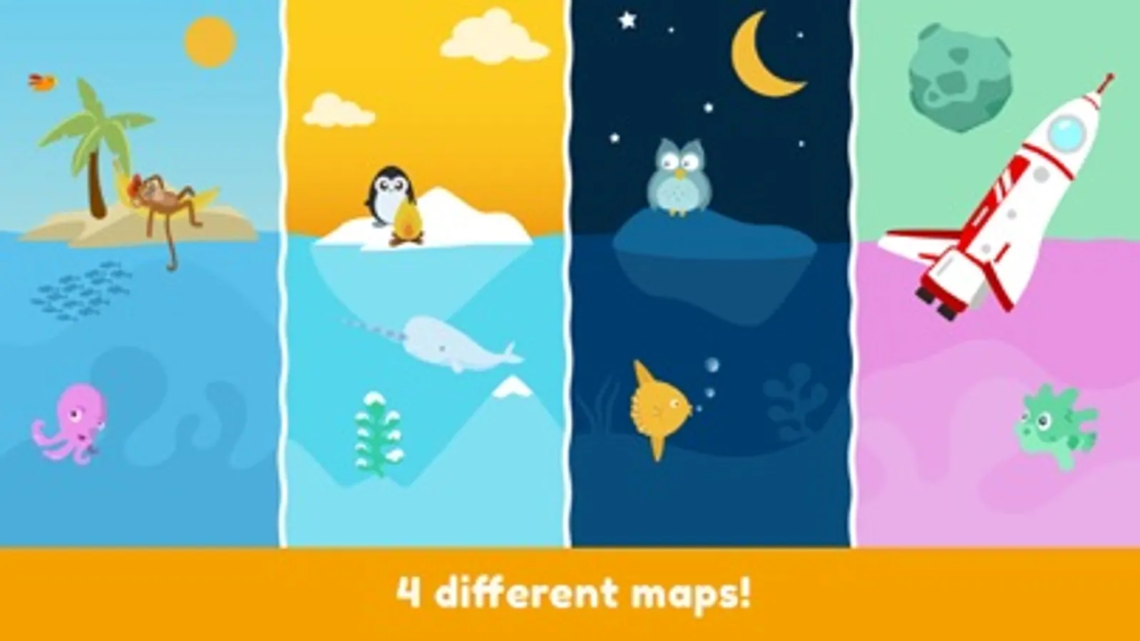 • 4 different maps to explore at your own pace: Tropical Island, Antarctica, Night Fall and Outer Space