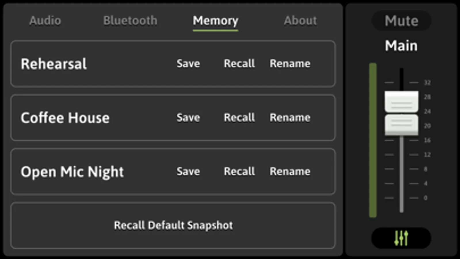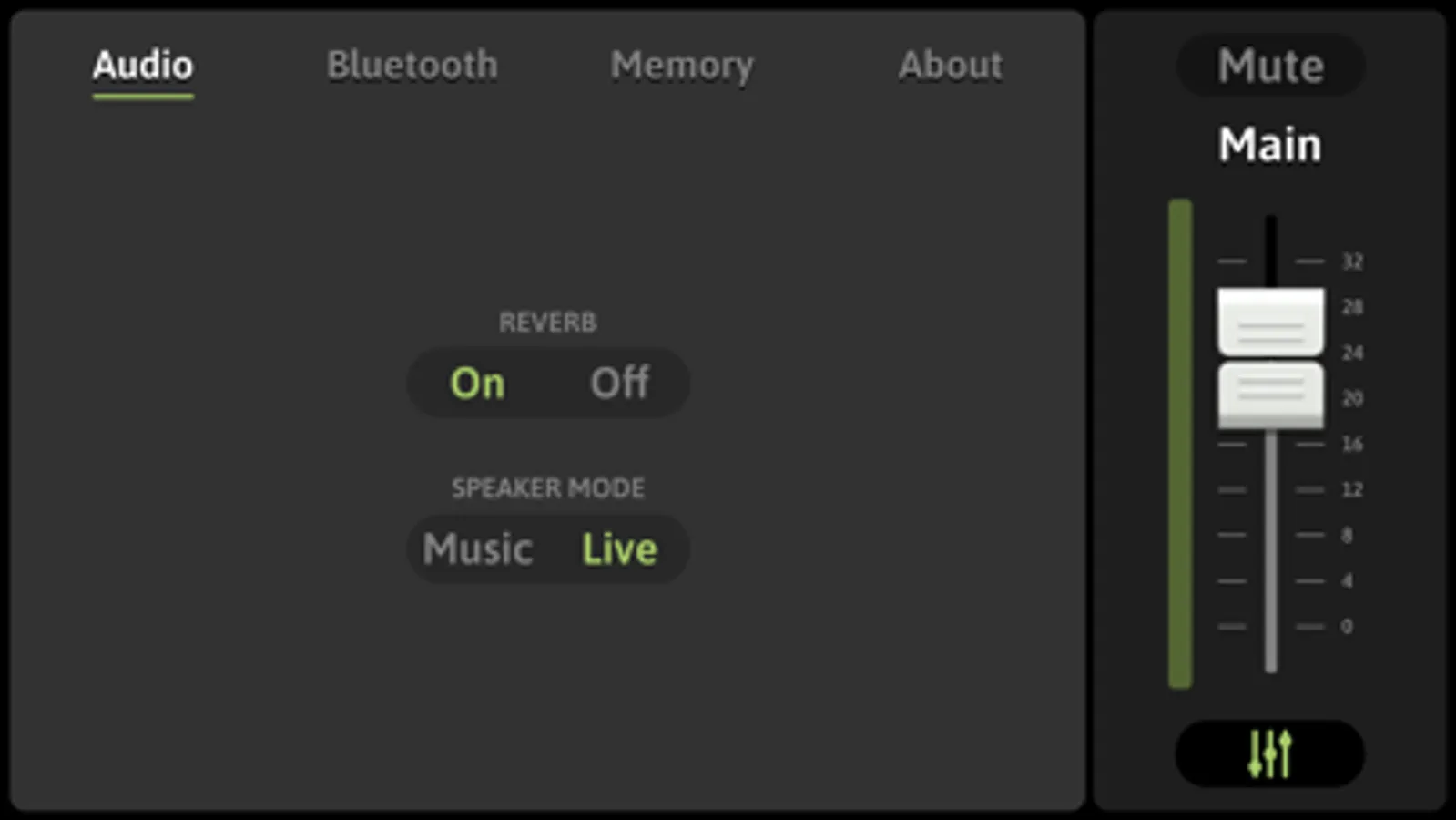 * Adjust channel levels, channel EQ, reverb, master volume, mix presets, and speaker modes for FreePlay Live