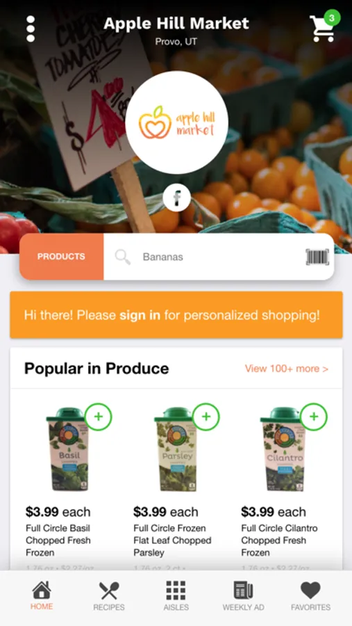 Order your groceries from Apple Hill Market on the go on your mobile device or from your iPad on your couch. Our award-winning grocery app makes grocery shopping a breeze with quick access to our weekly circular, an easy-to-use product search, detailed product details and labeling, tasty recipes and family meal planning tools. What could be better than that?