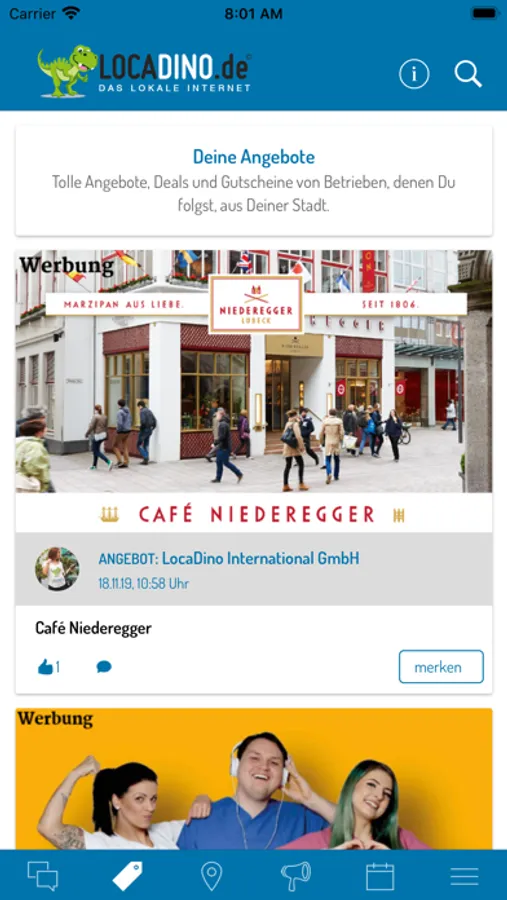 LocaDino ist Deutschlands neues digitales Stadtmagazin mit einer Community Funktion für die Nutzer und einem Werbegenerator für Gastro, Handel und Dienstleister.